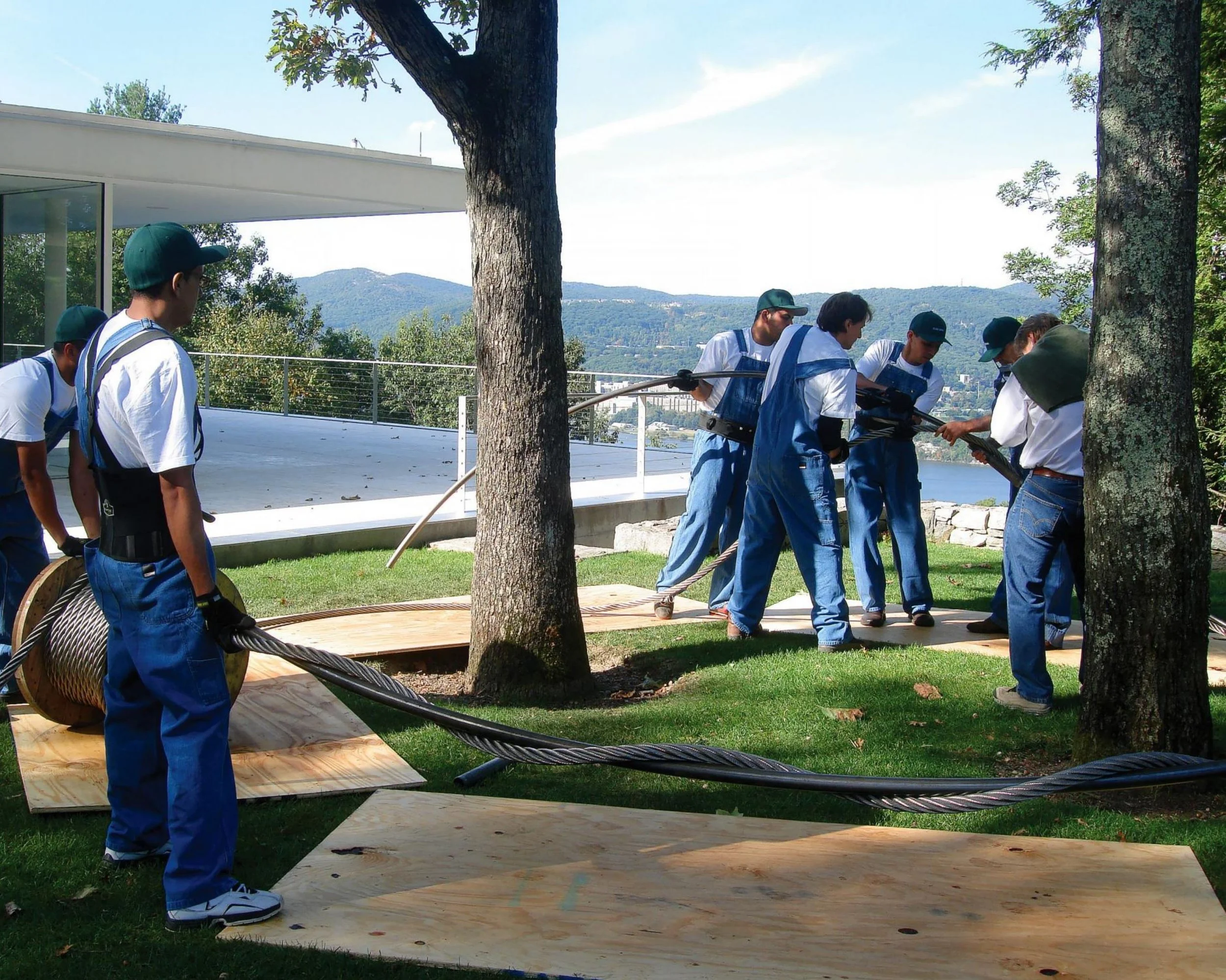 For this particular installation, which featured an enclosed ring of heavy metal cable encircling two oak trees, we undertook the task of identifying the appropriate materials and skilled workers. As part of our contribution, we located the specific type of metal and collaborated with skilled artisans capable of handling the thick steel wires essential for the creation of Salvadori’s envisioned masterpiece.